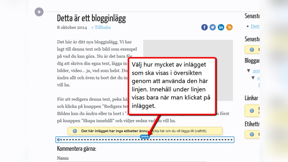 Uppmana till att skriva en kommentar. Säg gärna att du ser fram emot deras åsikter. Be också läsaren dela inlägget om de tyckte det var bra. Det sprider ditt innehåll till fler. En enkel uppmaning kan öka både engagemang och räckvidd.